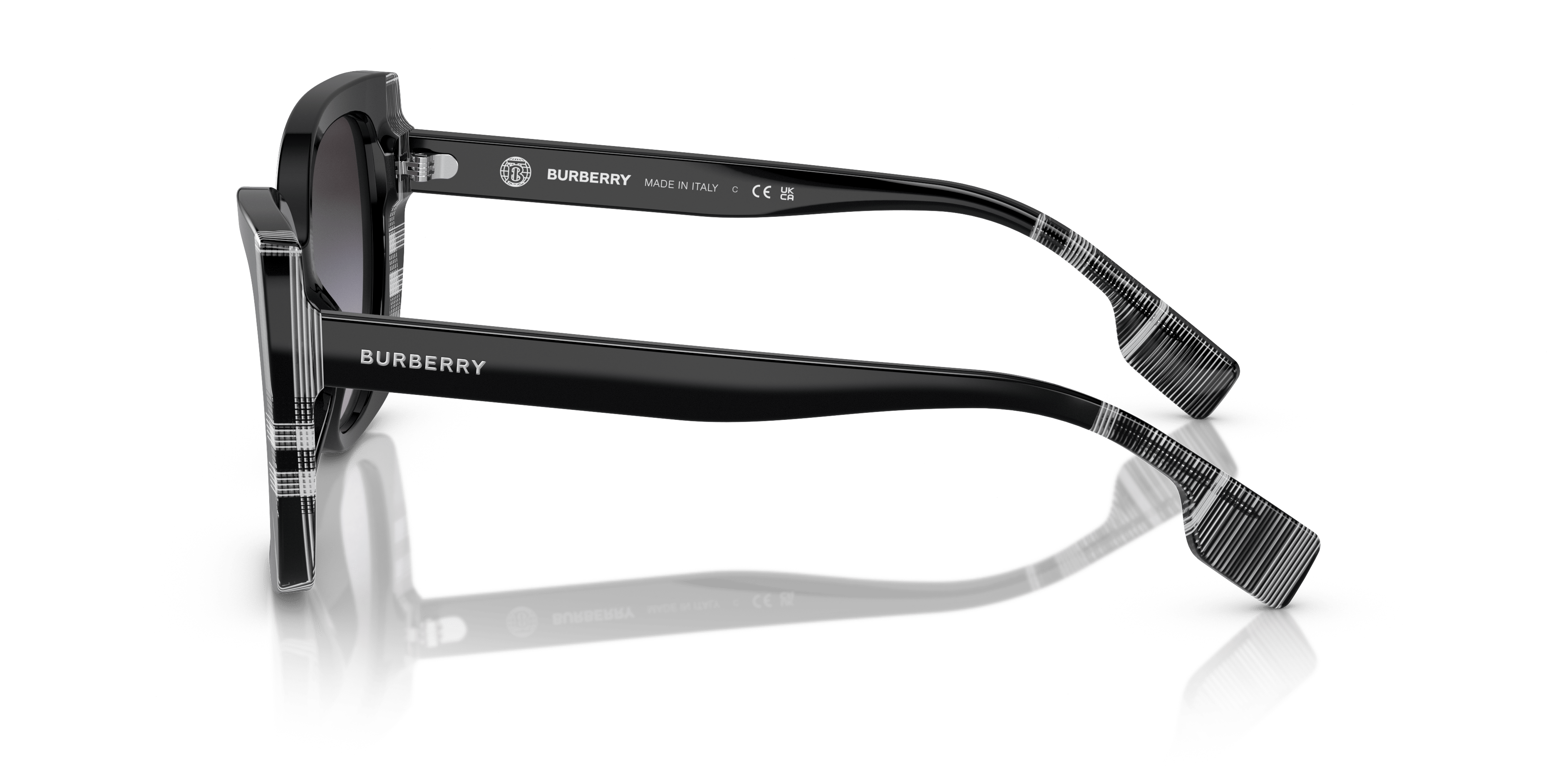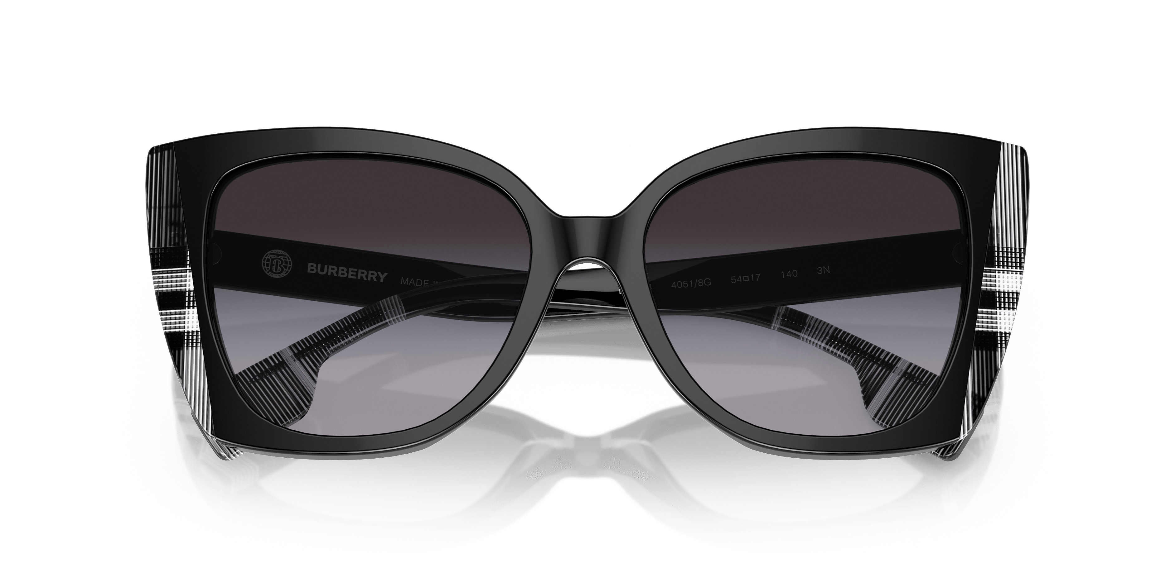 Gafas de sol Burberry negras con estampado de cuadros blancos y degradado negro-gris | BURBERRY BE4393 Meryl negras con estampado de cuadros blancos y degradado negro-gris