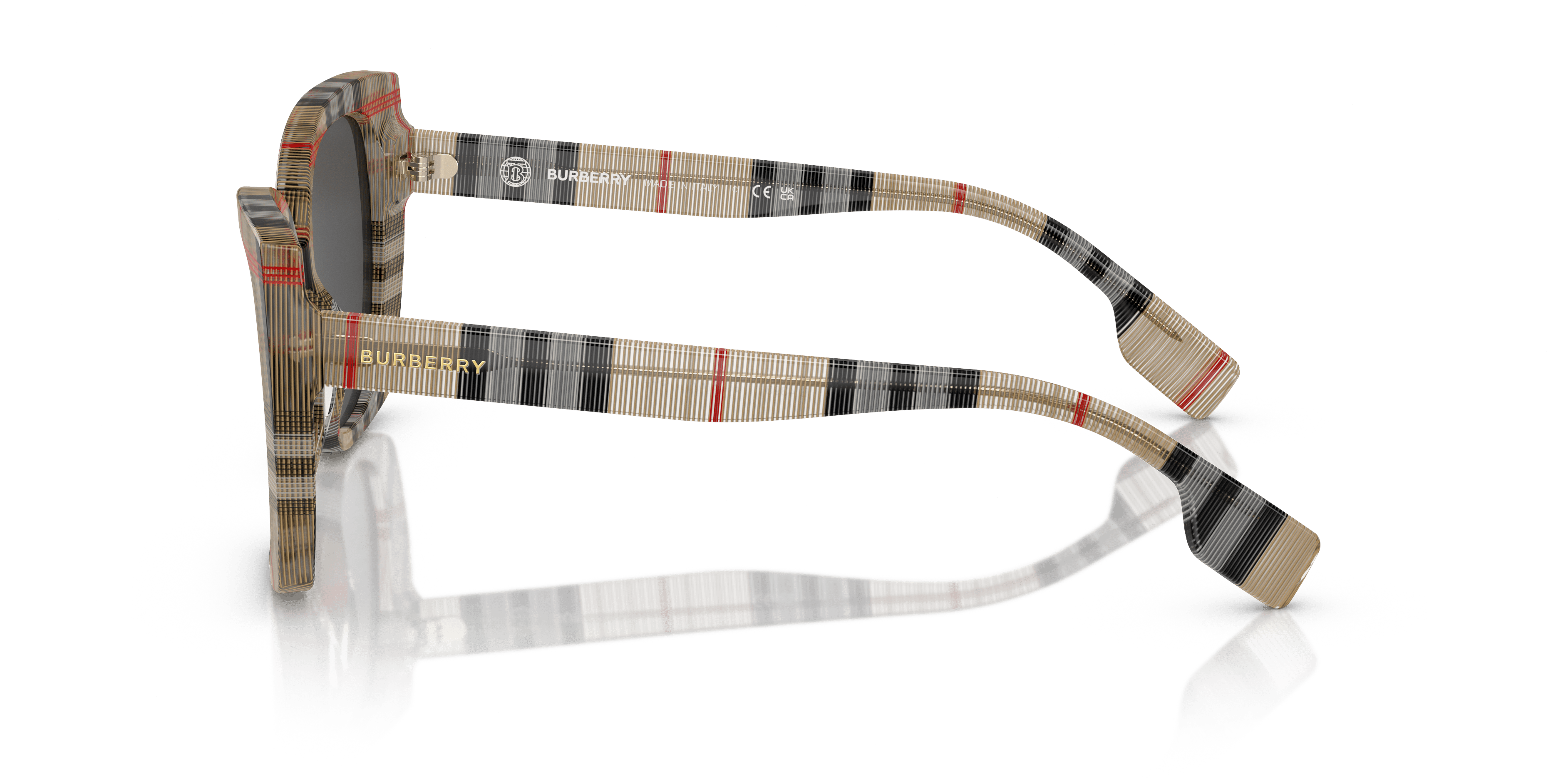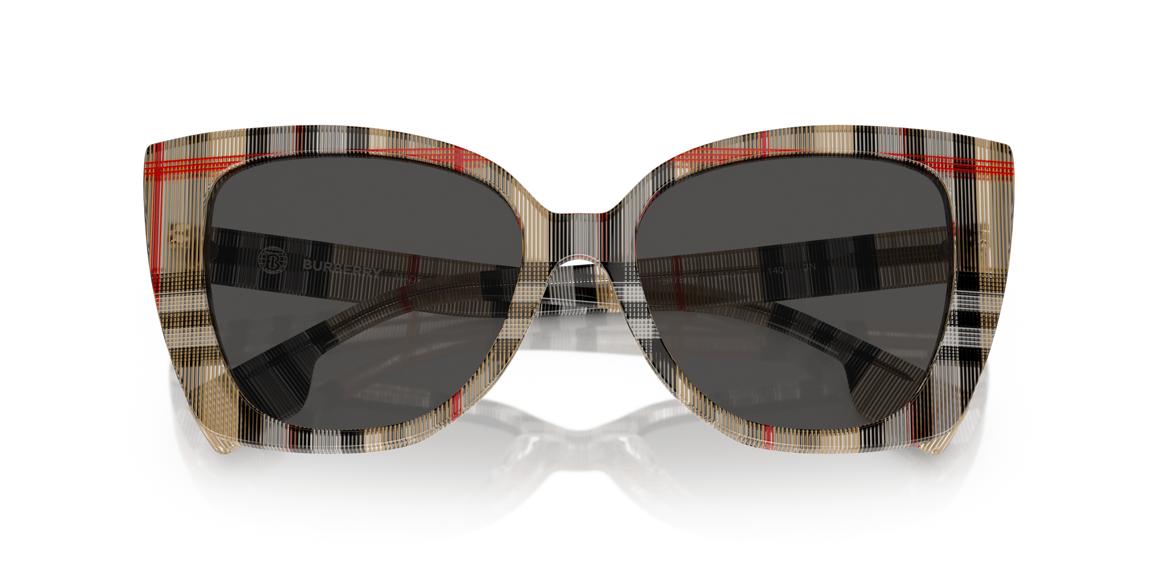 Presentamos Burberry Meryl, una cautivadora combinación de encanto vintage y atractivo contemporáneo. Las lentes de color gris oscuro sólido contrastan de forma impactante con la icónica montura vintage a cuadros de acabado pulido. Luce una elegancia atemporal con estas refinadas gafas de sol de estilo ojo de gato, elaboradas en acetato de primera calidad. Realzadas por el icónico estampado Burberry, estas gafas de sol derrochan sofisticación y estilo.