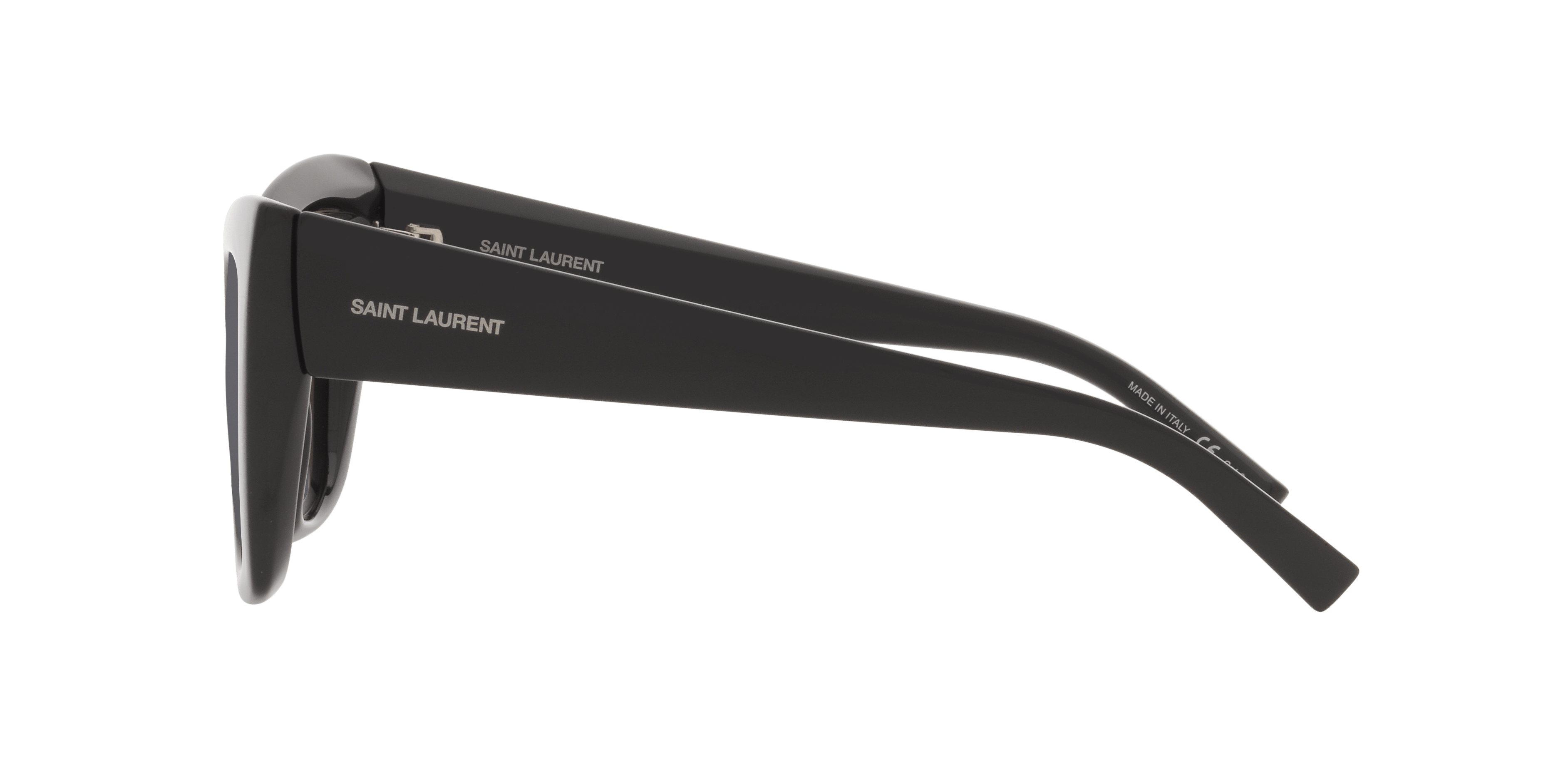 Las gafas de sol Saint Laurent SL 552, de diseño moderno y sofisticado, están confeccionadas en negro con lentes totalmente negras. Su forma de ojo de gato y su acabado pulido les confieren un aire de elegancia, haciéndolas perfectas para cualquier ocasión. El icónico logotipo de la marca en las patillas realza su estilo atemporal.